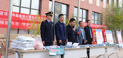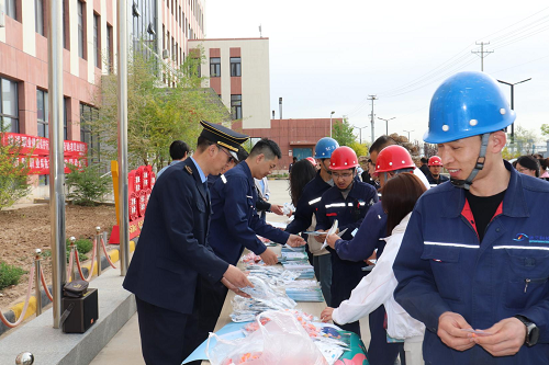 啟動儀式上,白銀市疾控中心魏立軍主任進行職業病防 治法宣傳周活動動員宣講,公司 EHS 總監張旭介紹了“職業 病防治宣傳月”宣傳活動的具體內容,各級領導在啟動儀式 上為員工發放了宣傳手冊和勞動防護用品。