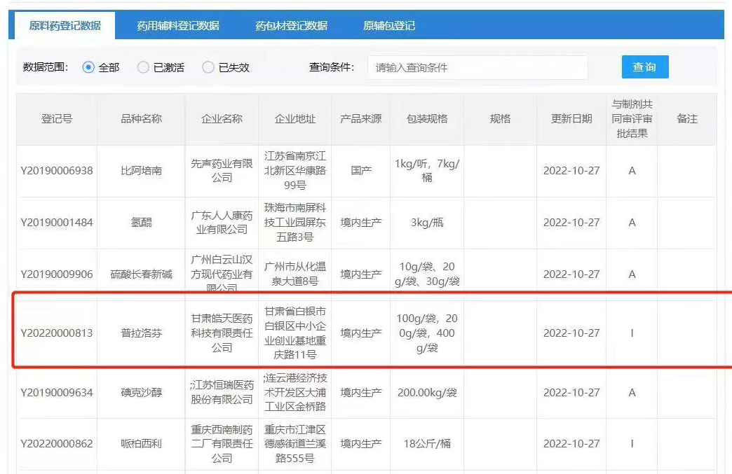 10月27日,甘肅皓天醫(yī)藥科技有限責(zé)任公司普拉洛芬原料藥完成國(guó)家藥品監(jiān)督管理局藥品審評(píng)中心(CDE)登記備案,這是皓天醫(yī)藥第一個(gè)原料藥品種備案,標(biāo)志著皓天醫(yī)藥正式進(jìn)入原料藥時(shí)代,后續(xù)皓天醫(yī)藥將有近三十個(gè)品種陸續(xù)向CDE中心提交備案。